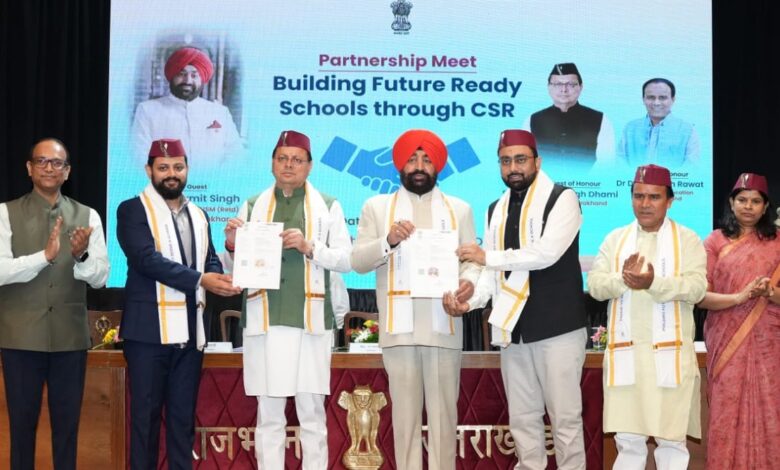 देहरादून । राज्यपाल लेफ्टिनेंट जनरल गुरमीत सिंह (से नि) एवं मुख्यमंत्री पुष्कर सिंह धामी ने बुधवार को राजभवन में आयोजित ‘‘भविष्य के लिए तैयार स्कूलों के निर्माण’’ (बिल्डिंग फ्यूचर रेडी स्कूल्स थ्रू सीएसआर) कार्यक्रम में प्रतिभाग किया। उनकी उपस्थिति में उत्तराखण्ड के सरकारी विद्यालयों में आधुनिकीकरण एवं बेहतर शैक्षणिक वातावरण के लिये सीएसआर निधि से होने वाले विकास हेतु शिक्षा विभाग और उद्योग जगत के बीच एमओयू पर हस्ताक्षर हुए। कार्यक्रम में शिक्षा विभाग द्वारा आईजीएल, रिलैक्सो फुटवियर, कन्विजीनियस, ताज ग्रुप एवं गोंडवाना रिसर्च के साथ एमओयू किया गया।